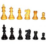 - Фигуры выточены вручную: светлые из самшита, а темные из эбена. Высота короля - 3,75 дюйма (около 9,5 см). В основании каждой фигуры установлен утяжелитель, благодаря чему фигура увесиста и приятно лежит в руке игрока.